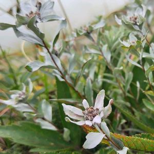 涼しげに咲くお花、 初めての出会いでした…♪( ´`)💕 "ハッポウウスユキソウ"(八方薄雪草) キク科 エーデルワイスの仲間であるミネウスユキソウの変種で 八方の固有種。 他のウスユキソウに比べ葉🌿が細く上向きについています。