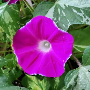 こんばんは🌛 今日は今シーズン1番の暑さでした🥵🥵🥵 そんな暑さなので朝早く起きるのが億劫でしたが、 昨日雨だったので鉢を軒下から定位置に動かしてると 赤ちゃん朝顔が2つ咲いてました✌️✌️☺☺ 今年初めての朝顔です。 斑入りの葉っぱで名前も可愛い 小さな朝顔です。
