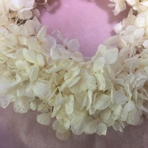 あじさいの漂白 今までに何度か失敗しながら やっと少しましになったかなと 思います 濃いめの漂白液 水2:1ぐらい 暖かい湯で漂白剤は控えめにしない 私は2:1でやりましたが半々でも いいのかも 8時間ぐらいつけます 濃い方がよくぬけます。 茎は短く切って時々上下優しく まぜながら全体浸かるように 長ーくつけないこと 液に長くつけすぎると花びらが 薄くなりヨレヨレちりちりになります 私が失敗したのもここですね 時間きたら水替えながら優しく水洗い そのあと 暖かい湯で溶いた3:1のグリセリン液に 1時間程つけます うまくいくと花びらは しっかりしていて干すのにも簡単です 重なった部分だけ花びら離してください 乾いた花びらは柔らかくさわってもパリパリになりません ❄️湯と漂白剤1:1にした時は 時間短くする ❄️大きい瓶に液入れ様子見ながら 白くなったらすぐ取り出す ❄️水でよく濯ぐ事