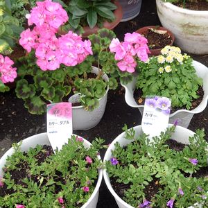 カリブラコア 品種不明 白八重 カリー ストロベリー 白八重は冬越しし続け4年目、カリーは昨年購入、挿し芽が冬越ししたもの。冬越しすると色や模様が変わる品種もあるけど、この2つは変わらないです😃 左奥のピンクは別のペチュニアです