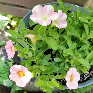 サフィニアアート ももいろハート ポット苗を4月半ばに購入し苦節2ヶ月😭 購入時から白っぽかったけど、どんどん白に...🔍 調べて肥料と日照でピンクが出るらしかったので南向きの場所に移動し液体肥料。でも少ししかピンクがでない😣 全体切り戻したらピンクがでた🙌 下側のはカリブラコア カリーマンゴー 去年挿し芽して冬越ししたものです