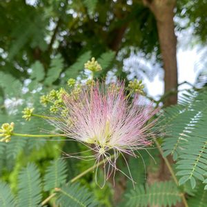 今年もネムの木の花がたくさん咲いてます🌿🌸 枝の成長がすさまじく、気がついた時に先端を切り 樹形を整えてます。 相変わらず根っこは暴れん棒で、平板を盛り上げてるの💦💦 きっと、もっと枝や根を広げたいんだと思うけど、、。 日陰ができて窓から入る日光熱を緩和してくれる、ありがたい木です☺️