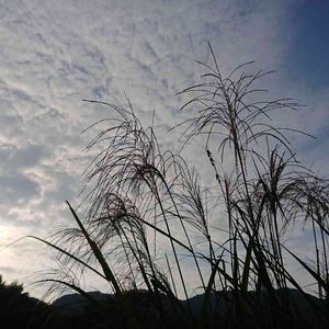 朝の散歩🚶🌿 秋だな~🍁なんて思いながら📸🤩 バッタが高い所にしがみついたまま...🛐 初めて見た🥺🥺🥺