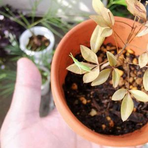 ローズマリーとバッタくん❣️ いちごポットをお家にしてます🏠