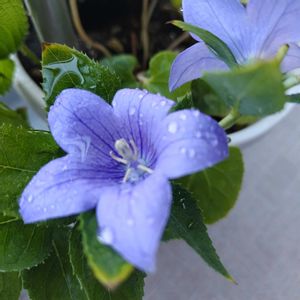 🏷️青い花で夏祭り2025 🏷️青いききょう科マニア 🏷️愛しの紫 🏷️癒しの薄紫 🏷️癒しの紫♡ 🏷️マザーパープル 🏷️✨️水滴は魔法使い✨️ Verandaのききょうの花で…💙💜💙🌿… アチチ🔥…の中で…も… 可憐に…💙💜💙🌱🌿… 涼しげ…(◕ᴗ◕✿)🩵💙