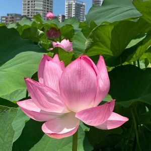 夏の思い出☀️ 7月中旬。 大船フラワーセンター(鎌倉市)にて。 たくさんの蓮の鉢植えが、ずらり並んでいました🎵