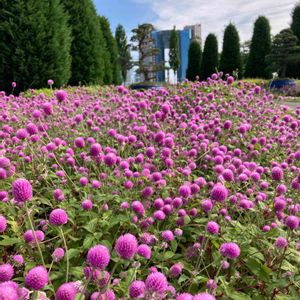 今日のお花 千日紅✨ ふわふわ咲いて可愛いです💕 奥に見えるのは東京ベイコート🎶 大好きな建物です。