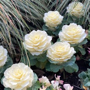 お散歩にて✨ 葉牡丹。 白い大きなバラが咲いてるように見えました🎶 品川中央公園にて。