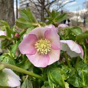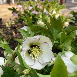 クリスマスローズ 眉引き というお名前です🎶 品川中央公園にて。 白いお花の縁どりがとても可愛いです💕