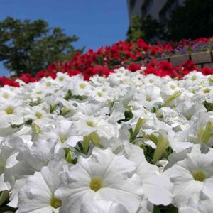 白いペチュニアが ふかふかに見えます✨ 花壇の植え込みにて🎶