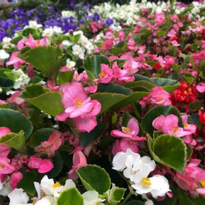 今日のお花✨ ベゴニア💕 駅前のロータリーにて🎶 奥には紫ペチュニア 賑やかに咲いてます✨✨