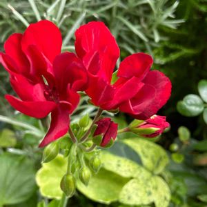 少し涼しくなってきたので 真っ赤なスーパーゼラニウム チャンピオンが 咲き始めました😍 葉は少し高温障害ぎみですが これから葉も濃くなってくると 思います🌿