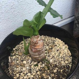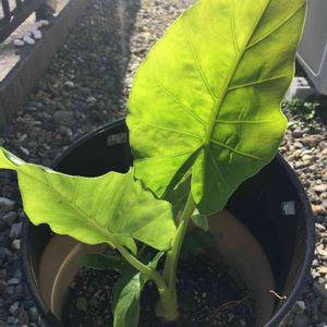 ほぼ放置の クワズイモ 屋外なので冬になったら葉はなくなりイモだけになるので 枯れちゃったなと思っていたら 葉が出てきた まだ元気だったんだー😆