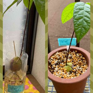 アボカド三男坊だけ今月になってからすくすくと育ってます🥑 プロトリーフさんの室内用観葉植物と多肉植物の土にしました。 この土好きです。👀💕 土の色の変化が分かりやすく水やりの目安になるのと、 虫がつきにくい仕様ということもあり、愛用してます。 🥑長男は★に 🥑次男は根っこだけで芽が黒くて伸びません😭まだ諦めず水耕栽培中 🥑三男坊のこの子だけすくすくと育ち嬉しい限りです🥰 🥑四男坊はすぐに★に😭 本当は、1つの鉢に 3本または、せめて2本でも 束ねて編み編みで成長させたかった😭 1本でも長い期間かけたので愛着あり👀💕 大きくなーれ✨🥑