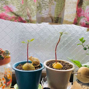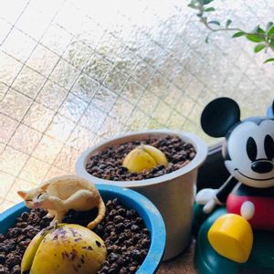 なかなか出てこなかったアボカド🥑 の芽🌱がやっと見えました💕 三兄弟に続いて大きくなって欲しいな😃