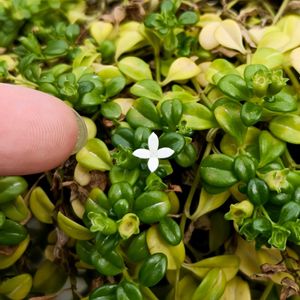 海浜植物、山野草、 ★ソナレムグラ(磯馴葎)★ アカネ科の多年草 花期:8〜9月 海岸の岩場に生育。茎は基部から分岐して匍匐する。葉は長さ1〜2.5cm、多肉質で光沢あり。花色は白、花径は3〜5mm。集散花序で花柄が2つに分化する。花冠は筒状で先端は4つに分かれている。萼は鐘型。 初見のお花だったので何枚もパシャパシャ撮ったのに、ピントが合ってたのがコレ1枚…😓 小さな小さなお花でした😂 2025.9.22 筑波実験植物園📱
