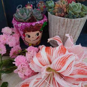 こんばんわ🌠 ペコちゃん祭り🍬 なので急いで 帰ってきました🤭 トワさんのリメ鉢 ぴーさんピックで 参加します💕 朝、アマリリスが 頭重くてポキッと 倒れてたのでカット✂️ しました😅 このあと花瓶へ やっぱり頭でっかちの アマリリス🌼 花瓶でも倒れそう〰🤣