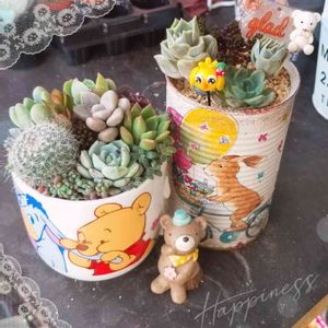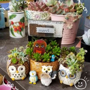 おはようございます🙆 🏷フクロウ祭り 参加させてください(⋆ᴗ͈ˬᴗ͈)” 🦉鉢の寄せ植えは、今のところ保ってます(*´罒`*) 虹の玉丼が、☔雨水吸いすぎて…中を見たら、ジュレてるコが居たので、カットして風通しを良くして☔がかからない場所は移動しました💦 そのカットしたコを、真ん中の缶にINしました(笑) 今日は、お休みなので、ゆっくり過ごします😁 smile忘れずに☺️☝️❤