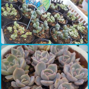 昨日は久々にやる気スイッチÖNﻌ💞!! トト様養殖他、無人販売用の寄せ植え✨ 新作ピータン、pick等をコネコネ☆ ぴーちゃんのRainpickが(*ฅ́˘ฅ̀*)💕カワイィ ↓は名前わからぬ葉挿し丼✨