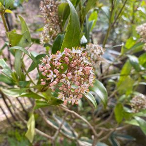 ちょっと前のふた山強行登山の時に、林道の入り口に花咲かせてました👀 ミヤマシキミ🎵 花、めっちゃカワイイです⤴️ シベが萌え〜〜😆😆 ピンクのツボミ💕 劇物指定のシキミとは違いますが、やはり毒のある毒姫のようです💦