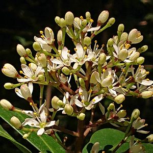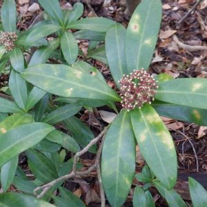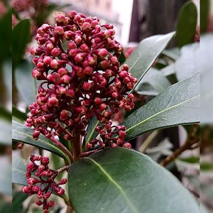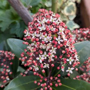 こんばんは🌙 歩道の花壇に植えられていました。 スキミア(学名) ミヤマシキミ(和名)