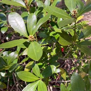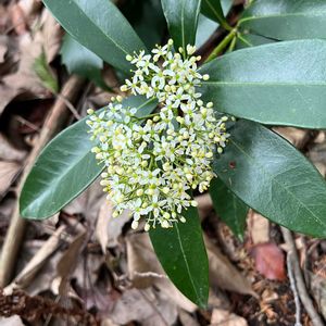 ミヤマシキミ (別名 億両) 花 2~3月 実 11月 1️⃣毒性(アルカロイド)なので鹿も食べない。 花の時期に昨年の実がしっかり残っている。 2️⃣24/11📱 3️⃣たまに赤のツボミも見かける