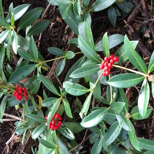 高尾山 頂上近くの陽当たりの良さそうな場所で、実と花?らしきものと一緒に ミヤマシキミであっていますか?♪(^.^)