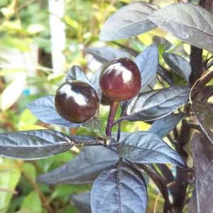 ブラックパール(観賞用唐辛子)✨。 なるほどね、と思わず頷く。黒葉に紫の花が咲き、やがてその実は紫~黒紫~赤へ変化する。楽しみだなぁ。