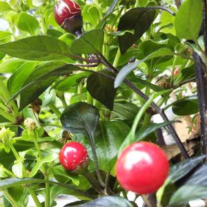 観賞用唐辛子(ブラックパール)。今はレッドパールへ変身、紫から赤に変わりました~。艶々した綺麗な赤。でも、今、思ったの⁉️辛いんだろうか😱。