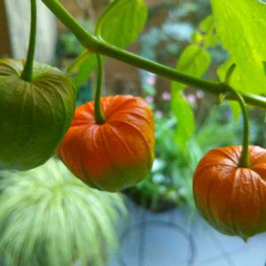 今朝は今までにない涼しさです‼ 種から育てたホオズキ、やっと ここまで色付きました🎵 市販のように大きくはなく、小ぶり! このくらいが愛らしい💚