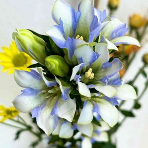 華道部に在籍のお孫ちゃんが 部活で活けたお花を半分届けてくれました💐 キキョウの色合いが素敵です💙