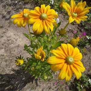昨年ルドベキアを植えていた所に突如姿勢正しく芽が出てきました。 ルドベキアって宿根草だったのね? お恥ずかしい🤭 でも真ん中が茶色じゃないんだけど…。 ルドベキアでいいのかしら? 昨年の姿がちょっと残念だったけど、今年は立派になって✨ ルドベキアである事を祈る日々🥰