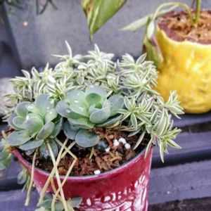 こんにちは✨😃❗ 前々から可愛いくって一目惚れ😵💘した多肉ちゃんをお持ち帰りしました‼️ 何て可愛いんだろ! 子持ち蓮華💕 ちっちゃなお子ちゃまがいっぱい出てる➰🎵 セダムフクリンマンネングサとともに寄せ植えしました! 生まれて初めて多肉ちゃんの寄せ植え❗ 水はけの良い腐葉土とその上に水コケを置いたけど、 何か違うかな~😅 水ゴケなんて置いたらダメですか~❓ 水は半月に1回程度あげればいいんですよね? すぐに水をあげたくなったゃう気持ちを抑えます…。 寄せ植えしてる時に子持ち蓮華の大事なお子ちゃま達がバキバキっと折れてしまいました‼️😭 もう、そぉっ~としておきます。 子持ち蓮華の後ろのセダムフクリンマンネングサはワサワサしていて相性が良さそう~🎶 何しろ初めてなのでドキドキしながら育ててます😅