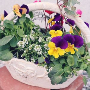 以前から作ってみたかったビオラのハンギングバスケットが完成しました‼️😃 あまり大きくないのにけっこう重い〰️ イエロー系のカラーで寒い冬も暖かくしてくれそう~🎶