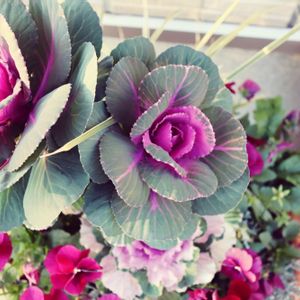 少し前に寄せ植えした葉牡丹。 薔薇の花みたいに美しい‼️😍 中のカラーも私の大好きなピンク😍 このまま華麗に育っておくれ➰🎵