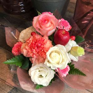 週末のお花。寒くなってきたので見てるとホッとな気分になれる暖色系で。沢山咲いた千日紅はミニバスケットに入れて、ドライフラワーに✨
