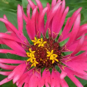 昨年の取り置きの種から、今までに無い花芯の色鮮やかな百日草が咲きました🤗🎶🎶