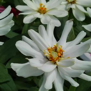 種まきの百日草(ジニア)もたくさん咲きました。 花びらが多くてとっても綺麗です。 うどん粉病にならないように管理するのが難しいですね。
