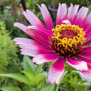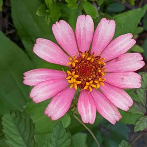 おはようございます☀ ダイソーで買った変わり種百日草の花が咲きました‼️ ピンクと黄色、ちらも可愛い💕 🏷私の庭の花達