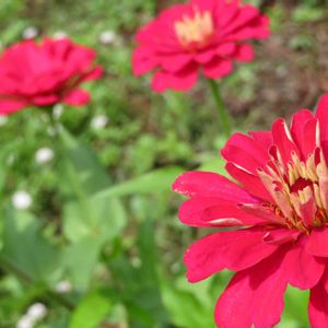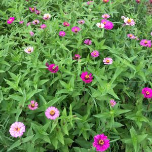 1週間ぶりに畑に行ったら、雑草に負けず百日草がたくさん咲いていました。