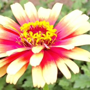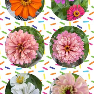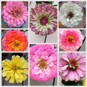 ジニア 百日草 キク科 花言葉🌼不在の友を想う 幸福 一つの株から色んな色が咲く不思議❤️💛💚💛💜 真ん中の筒状花も可愛いおしゃれさん❣️