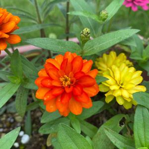 今日のお花 🌼百日草(ジニア)🌸 記念撮影だよー🌼🌸🌿集合❣️ 2022/8/7撮影