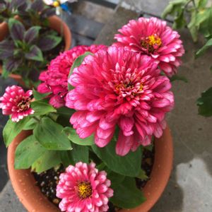30日間、咲き続けている百日草 種子から育てると 高低感があって 自然な感じが好き🤭