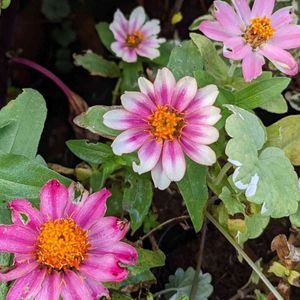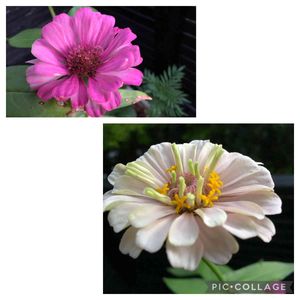 百日草。 昨年のこぼれ種から芽が出てるのを発見。 見守っていたら咲きました。 今はピンクとオレンジが咲いてます。 あと数本のあるけど何色が咲くかな。