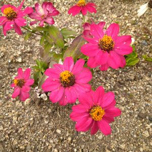 今、庭に咲いているジニアを1つずつお礼も込めて🙏 花は綺麗ですが葉っぱが枯れかかって来ました😂