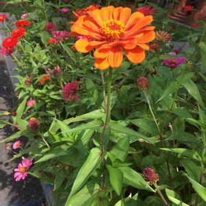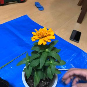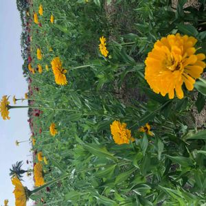 家庭菜園の百日草🌼 大分種が出来てきてますがまだまだ綺麗にさいてます💕