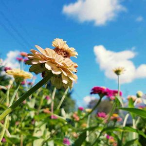 夕方の散歩で見つけた 「ジニア」さん達 💙💚💛💜❤💗💖 朝だったり、夕方だったり 日によってマチマチな川沿いウォーキング🚶♀️ですが、 暑い毎日も朝晩は少しづつ風の中にも秋を感じますね🍃🌀🍃 余りの日照りでダメになったお花も結構見掛けます(´-ω-`) そんな中でやはり見守る人が居る元気なお花見つけると嬉しいです💕 昨日、通ったら大分お花も減って(´・ω・`) 元気な時に撮ったお花picします