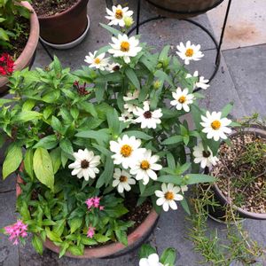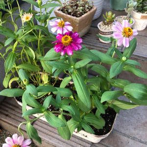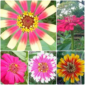 百日草(ジニア) 🌼✨ いま咲いてるジニア達です 前picの子は右上↗️ 何日か前に、花びらがなかなか開き切らずストロー状だったのは、左上↖️の子です🌼 綺麗に開いてくれました✨