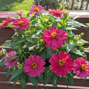おはようございます〜😄 暑い日が続いておりますね〜😅⤵️ こちらは雨が殆ど降らず、雷が鳴れど全くで、雨乞いをしたいくらいですね〜🤣⤵️ 今日は、今年も種まきをした切り花用の百日草を見てください〜😆💚❤️🩷💛🩷 緑色と色とりどりの百日草2袋を種まきしました〜😍🩷 5月1日に種まきをして、7月に入り、どの株にも花が咲き、色とりどりの百日草が美しく咲き乱れ始めました〜💞💠🎉 同じピンク系統でも微妙に色合いが違い、楽しませて貰っておりますが、何故か黄色と白色が無いのです〜💦 発芽しなかったのでしょうね〜💨 そして、緑色の百日草ですが、昨年同様、八重の素敵色が咲いてくれました〜💚💚💚 でも、今年は、緑色の八重が少なく一重が多いです〜😅 何故か、色とりどりのの方も一重が多いのです〜😅 一重より八重が良かったなぁ〜〜・・・心の声でした〜(笑)
