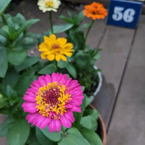こんにちは🤗 元気色の百日草🌼 皆元気になぁ〜れ💛